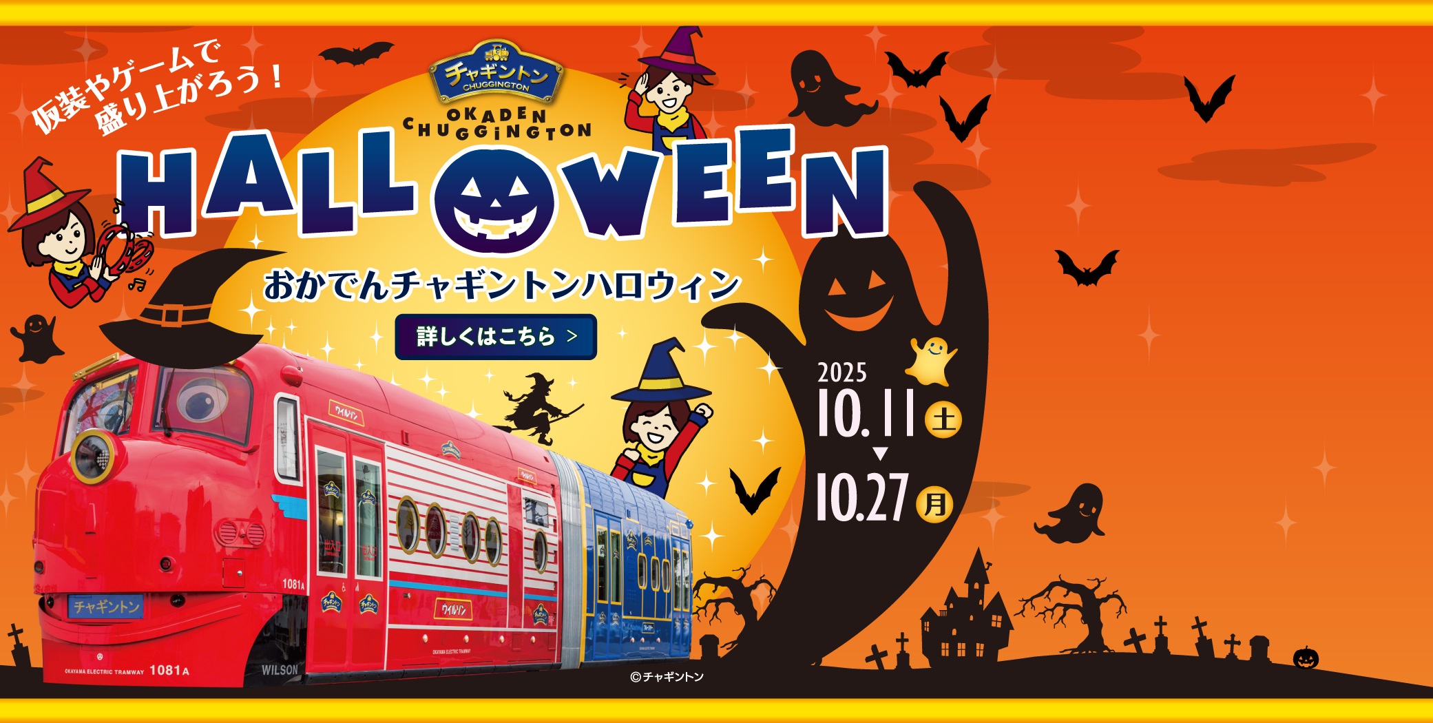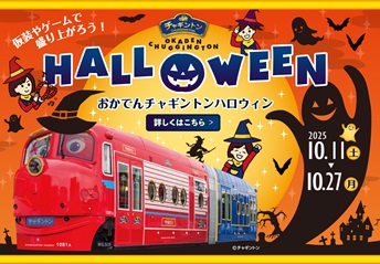 10月11日(土)~10月27日(月)の期間中、おかでんチャギントン電車がハロウィンバージョンにチェンジ! ご乗車の方全員に、期間限定のオリジナルシール(ハロウ…